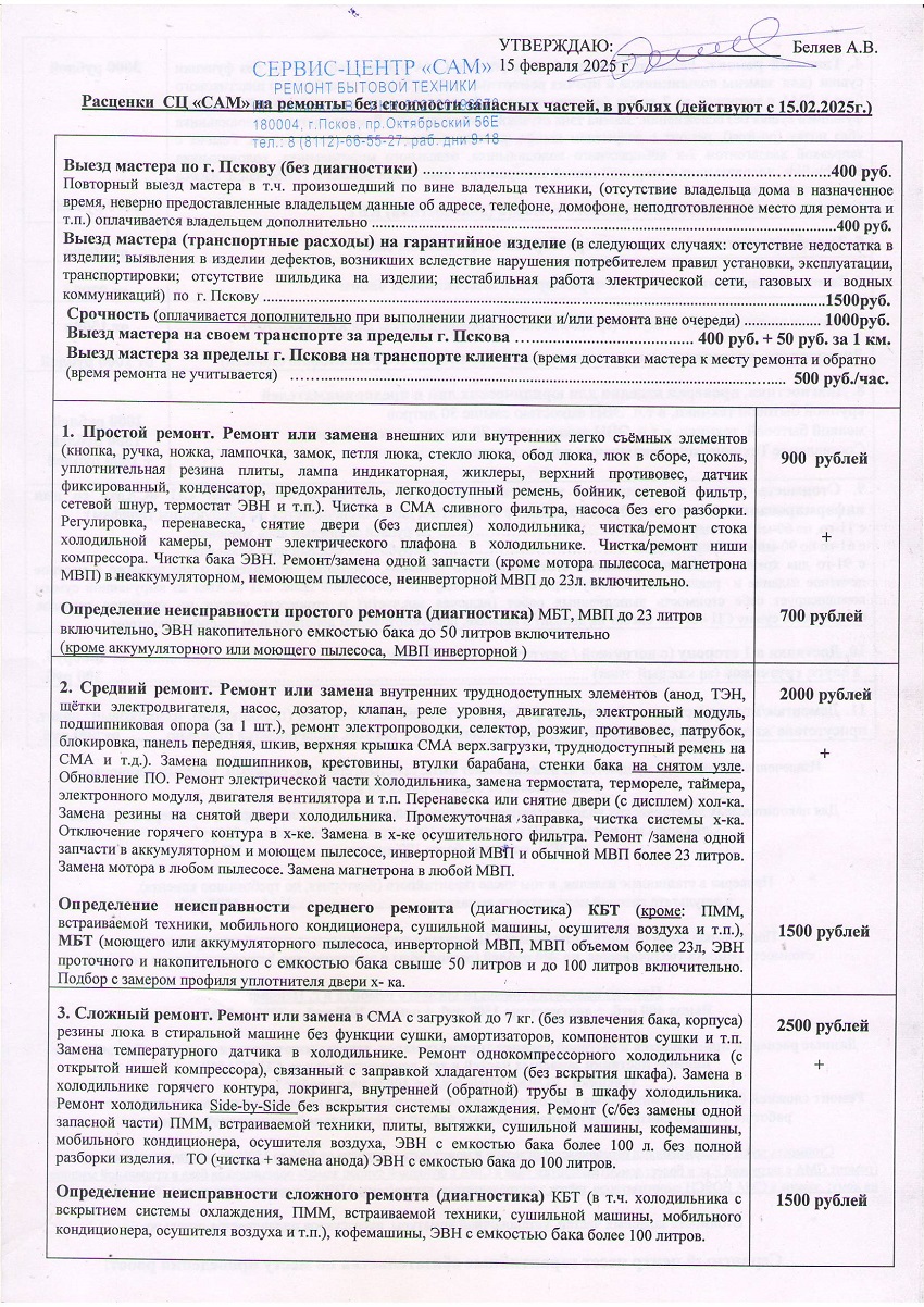Прайс-лист